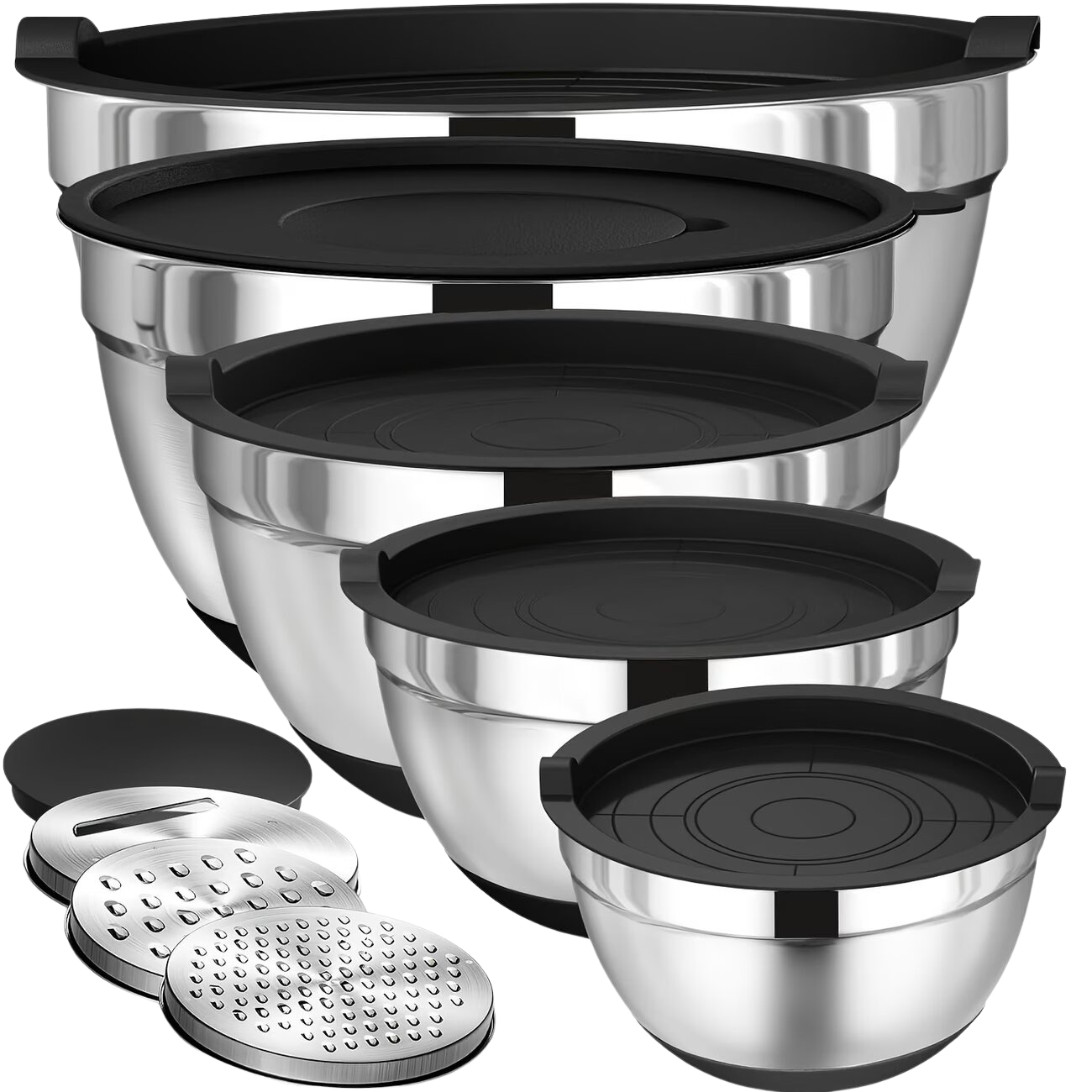 8PCS Stainless Steel Mixing Bowl Set with Airtight Lids & Grater – Non-Slip Kitchen Mixing Bowls