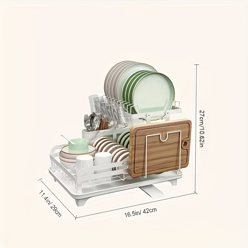 Keep your kitchen clean and organized with this White 2-Tier Dish Drying Rack. Designed for maximum efficiency, this rack provides ample space for drying plates, bowls, cups, and utensils in one place.