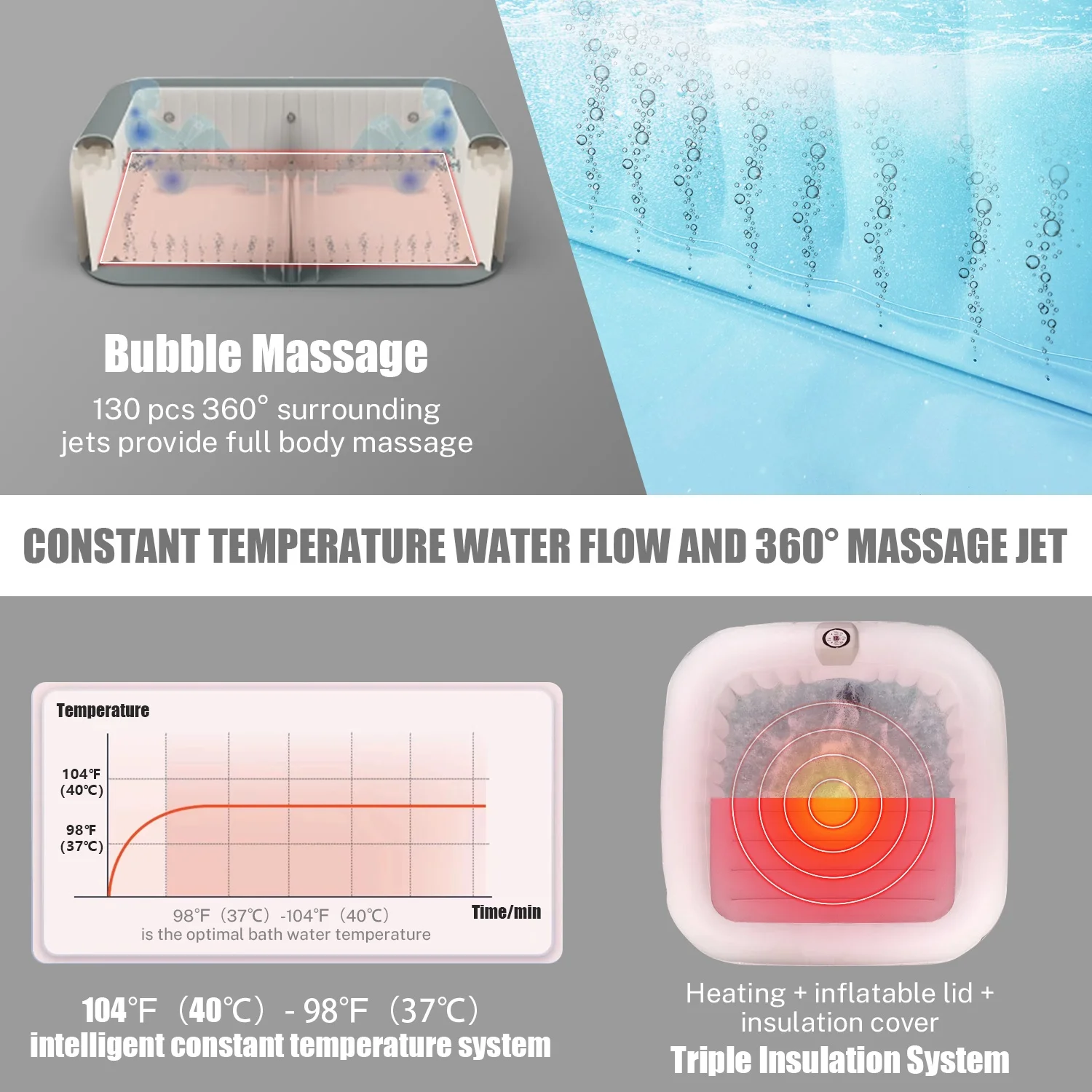 3. 360° all-round water massage: 130 surrounding massage jet devices.