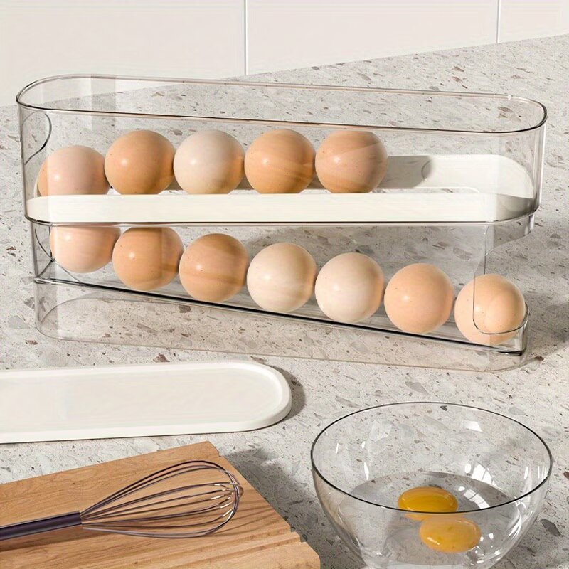 Featuring a rolling design, eggs automatically move forward as you take one, ensuring convenient access and reducing the risk of breakage. The double-layer structure allows you to store multiple eggs in a compact space, making it ideal for modern kitchens.